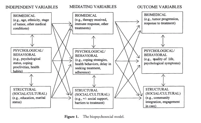 Interestingly enough, the Biopsychosocial model was originally proposed by George Engel in 1977 (also see reference 2 in that link) as a means of explaining all health outcomes, including cancer and disease, not just pain.